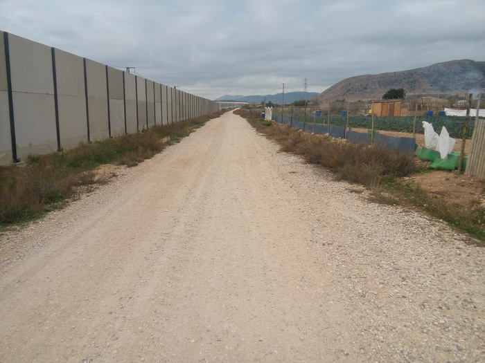 Esta senda nos guía hasta el camino asfaltado de Monforte a Santa Pola (el que lleva al inicio del Barranco del Grifo) y nos dirigimos hacia el camino por las faldas de la Sierra de la Losa, que nos conduce hasta la zona de la Font del Llop.